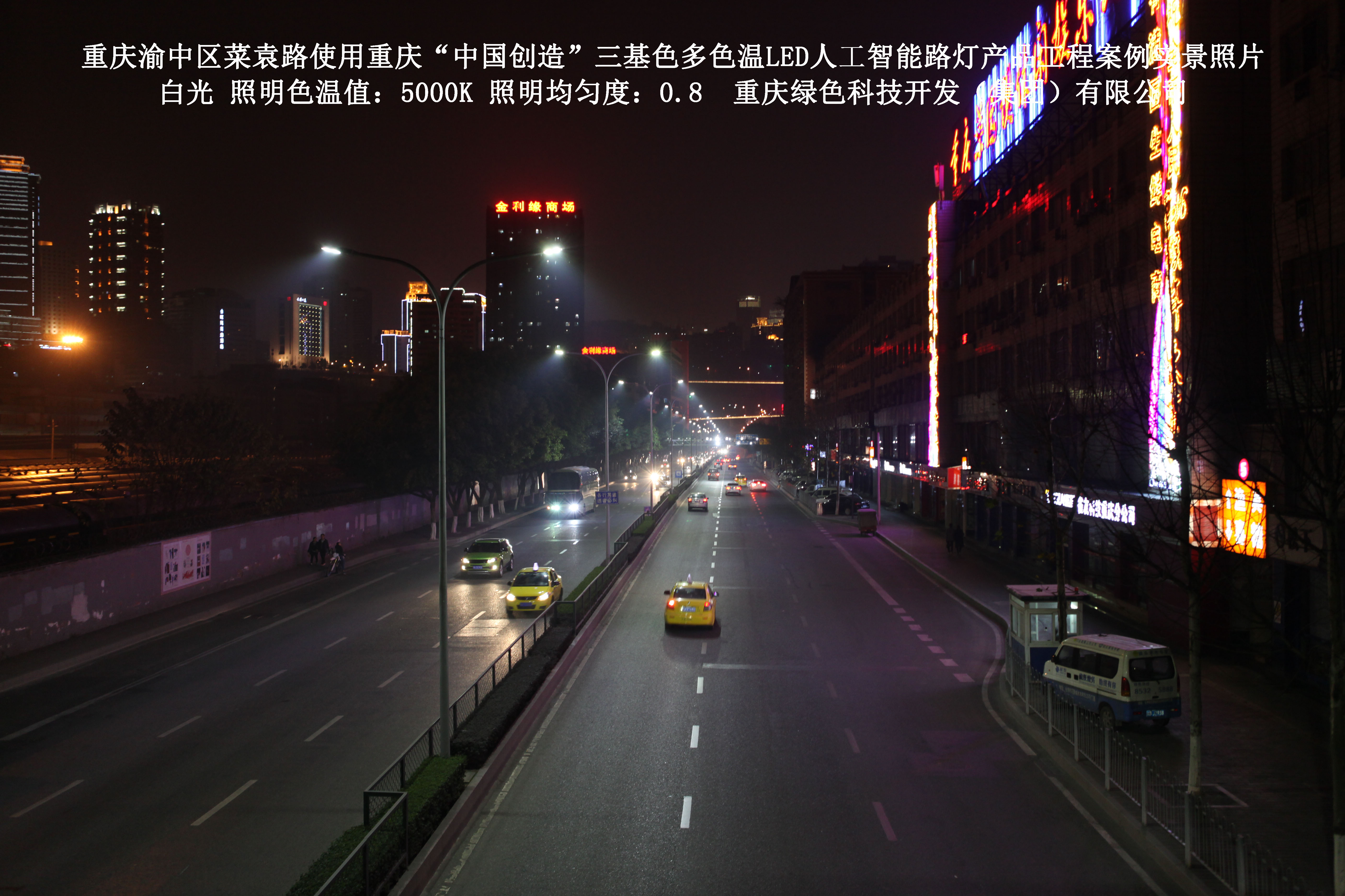 重慶市渝中區(qū)菜袁路使用我司研造的重慶“中國創(chuàng)造”三基色多色溫